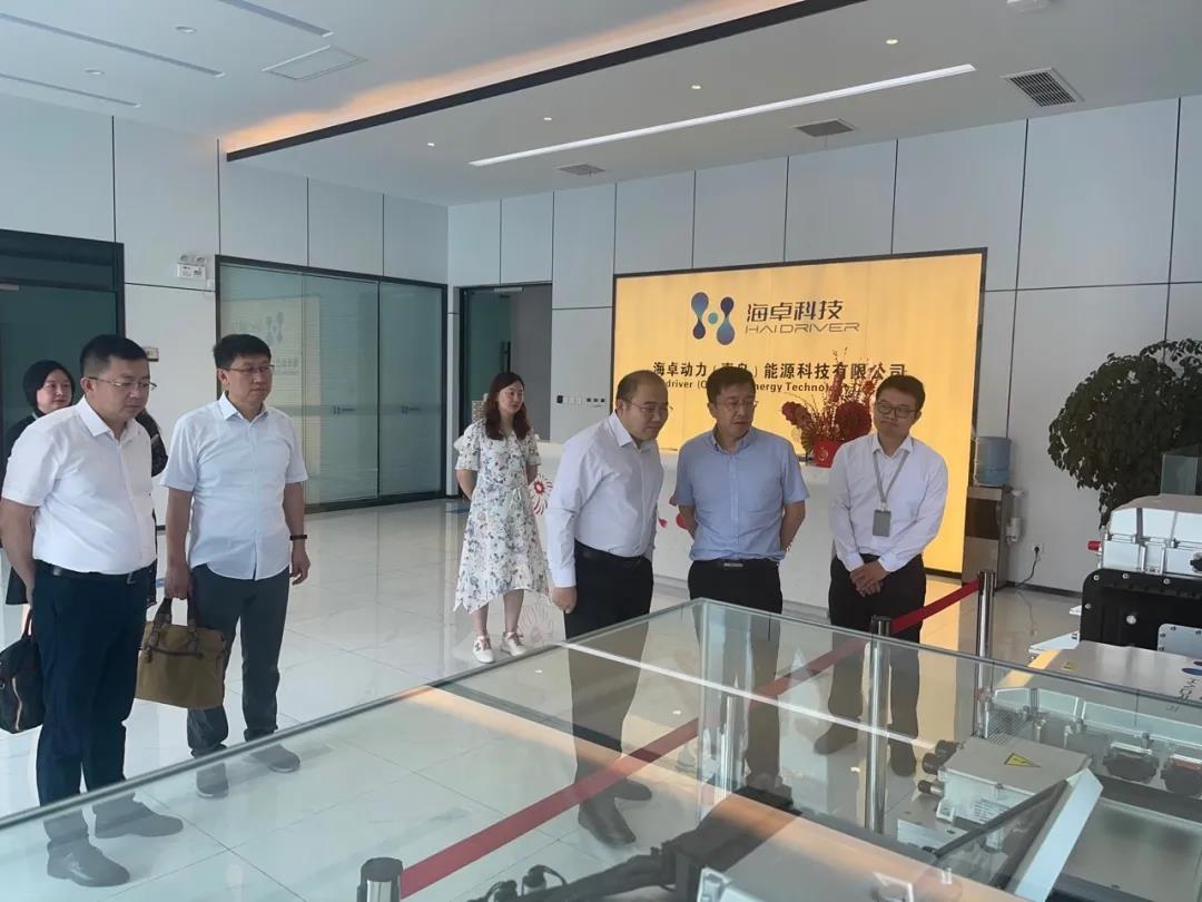 海卓科技王超博士、常務副總經(jīng)理謝佳平介紹了公司整體情況和自主研發(fā)的燃料電池發(fā)動機配套的自卸車、物流車和冷藏車,以及各個代系產(chǎn)品、國產(chǎn)化進程情況,隨后李局長一行參觀了氫燃料電池發(fā)動機總裝工廠和加氫站。